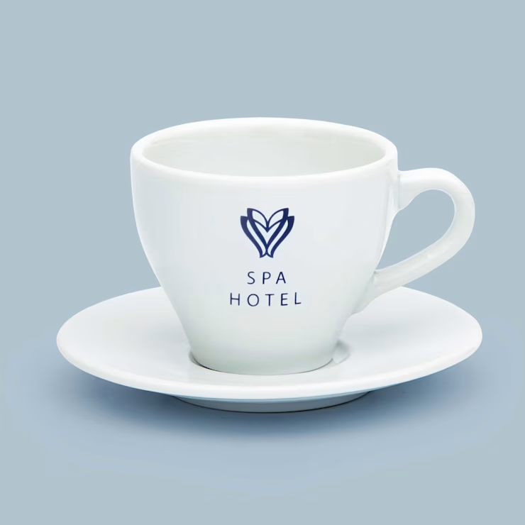 Jij zet je gasten natuurlijk een dampend kopje koffie voor. En wat komt er nu professioneler over dan een kop en schotel met logo, jouw logo? Kopjes bedrukken kan al vanaf 36 stuks. De bedrukking met jouw logo is erg duurzaam doordat we het ontwerp in het porselein branden.