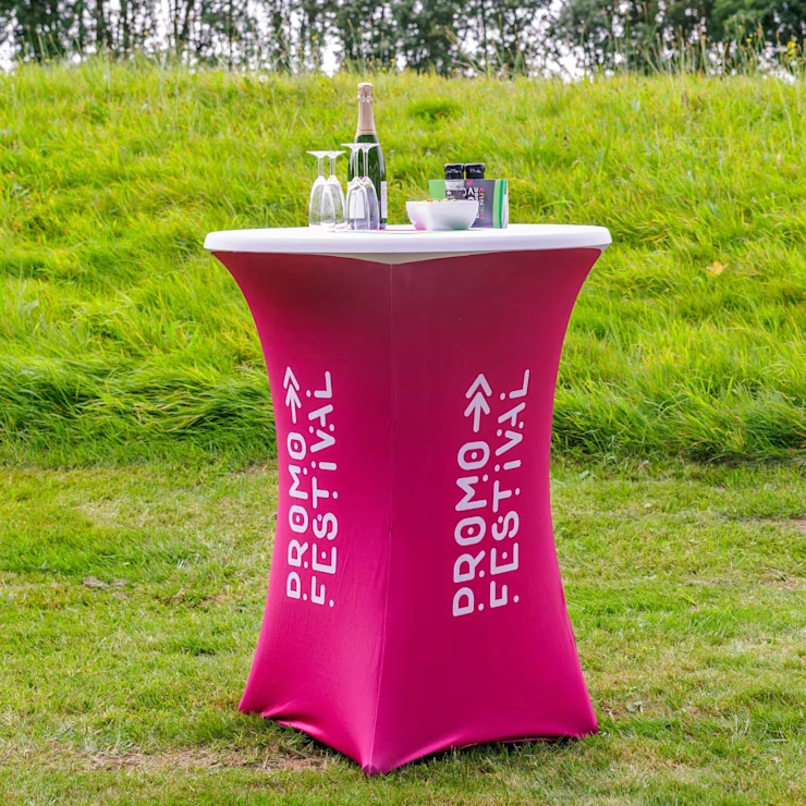 Geef jouw evenement een professionele uitstraling met bedrukte statafelhoezen. Perfect voor beurzen, bedrijfsfeesten of bruiloften. De statafelhoezen zijn volledig in full color te bedrukken met jouw logo, patroon of ontwerp. Ze beschermen bovendien je tafels tegen krassen en vlekken, zijn eenvoudig te plaatsen en wasbaar voor hergebruik.