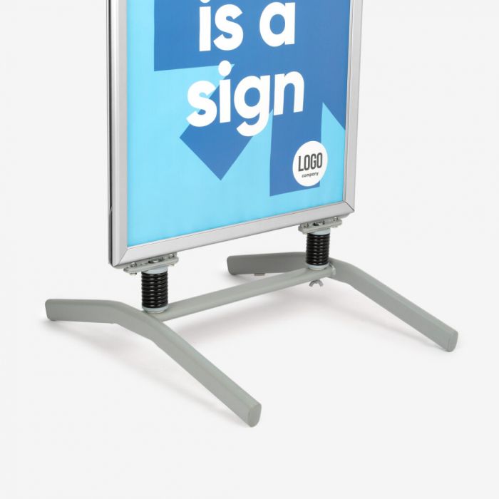 Het Stoepbord met swingvoet is een stabiele, robuuste en flexibele manier om jouw promotie, aanbieding of boodschap onder de aandacht te brengen bij voorbijgangers. Dankzij de solide aluminium constructie en de swingvoet-basis blijft het bord ook bij wind stabiel staan, terwijl de frame-voet licht meebeweegt, waardoor het minder snel omvalt. Je kunt posters in formaat A1 of A0 in het bord plaatsen en aan beide zijden dezelfde of verschillende posters tonen. De verwisseling van posters is eenvoudig en snel.